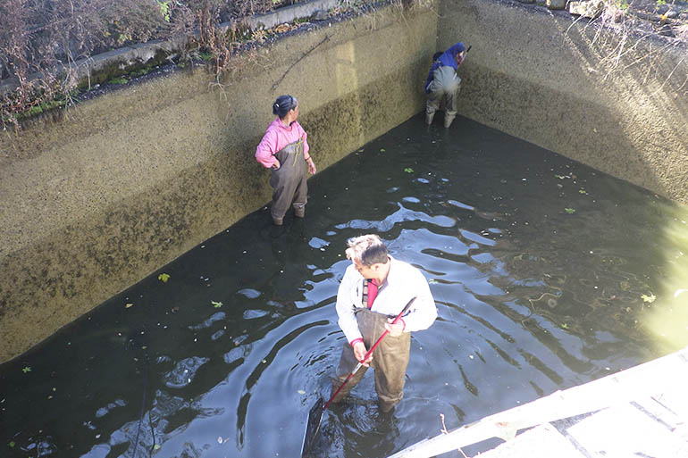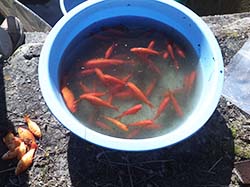 2025.11.17 安曇野市危機管理から 防火水槽に以前からいる 和金魚を 環境配慮から河に捨てるのも と言う事で 捕獲致しました