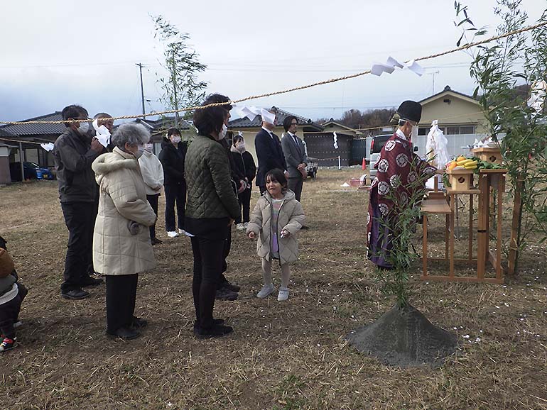 2022.12/18 本日等々力邸の地鎮祭を催行致しました あいにくの天気では有りましたが施主様ご家族お母様も一緒に長年の夢でもあった本格的な土蔵をなまこ壁で作りたいとの話を頂き 設計から何度も案を練り 無事契約し 本日大安吉日の地鎮祭を行う事までかぎつけました 長丁場にはなりますが 立派な土蔵と 別棟に物置まで年内から基礎工をスタート致します。
